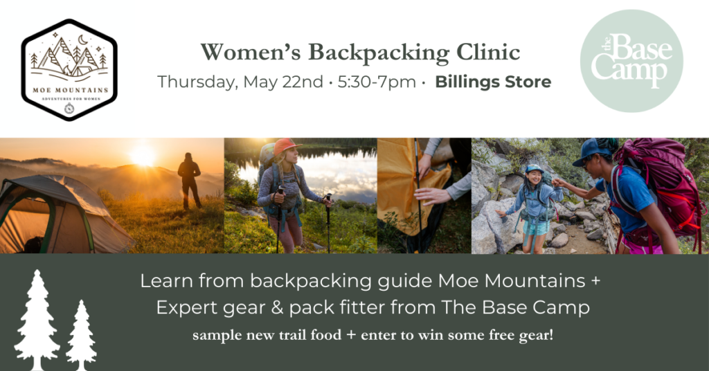 Ladies, have you been wanting to get into backpacking but aren’t sure where to start? Maybe it’s been a few years and you’re curious about the latest gear and techniques. Either way, we’ve got you covered. Join us at The Base Camp in Helena for a free Women’s Backpacking Clinic on Thursday, May 22nd at 1730 Grand Ave., Billings.