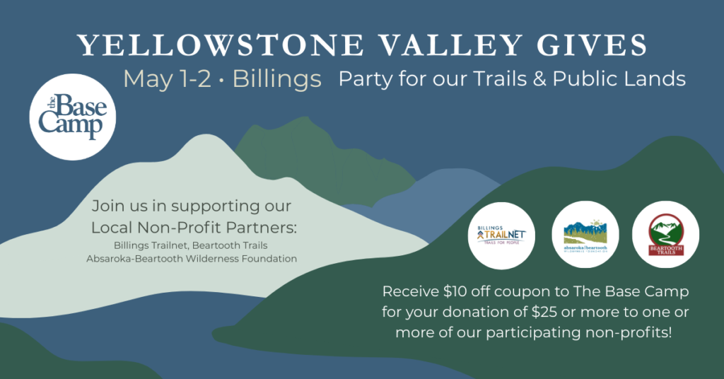 Join us at The Base Camp in Billings for Yellowstone Valley Gives, Party for our trails and public lands—two days dedicated to giving back to the amazing local organizations that help protect our public lands, build trails, and make our community a better place to live and explore.