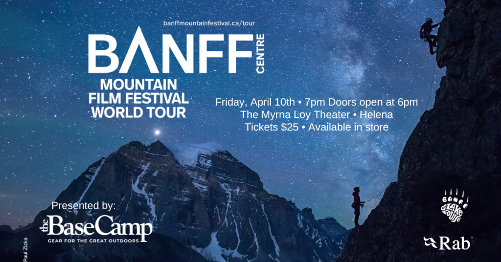 Doors open at 6pm. Billings Trailnet, Absaroka-Beartooth Wilderness Foundation, Wild Montana and Montana Fish Wildlife and Parks will join us with information and giveaways. Plus, you’ll have a chance to win lots of wonderful raffle prizes from The Base Camp as well as giveaways from the Banff Centre including passes to Lake Louise Ski Resort.
